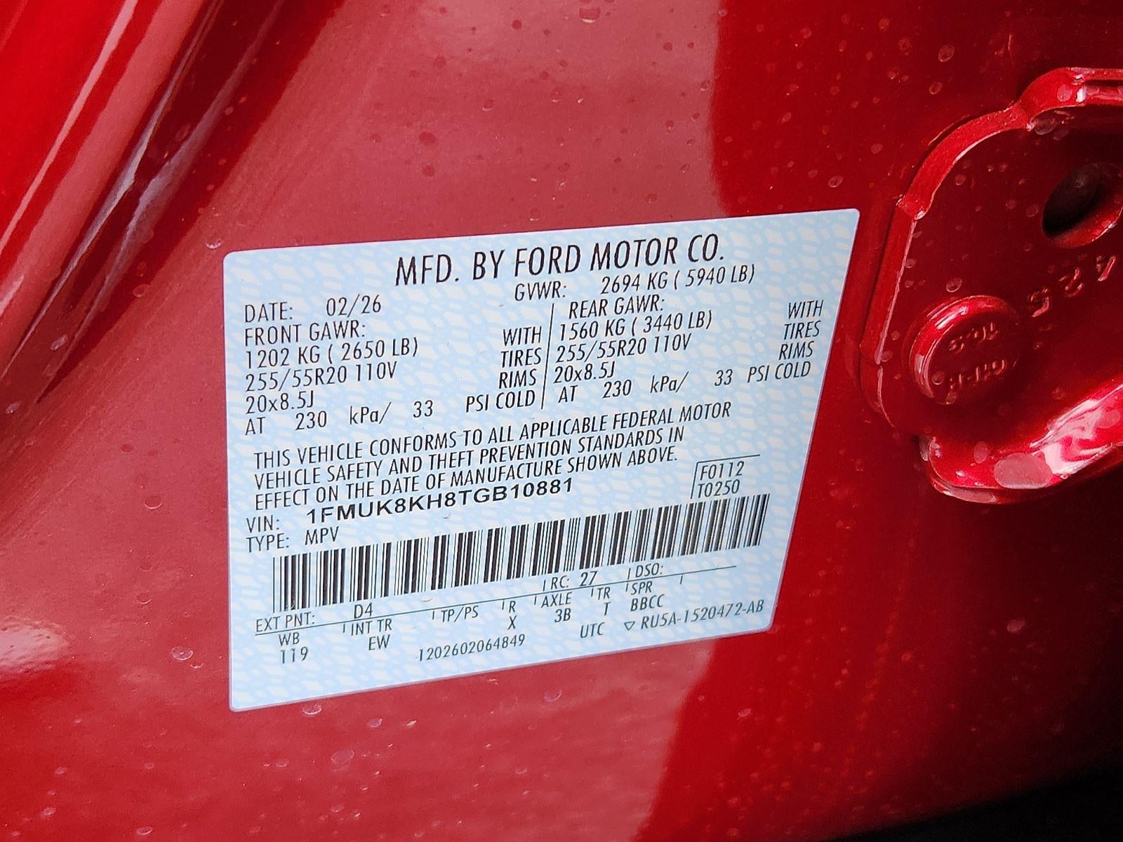ENGINE: 2.3L ECOBOOST I-4, RAPID RED METALLIC TINTED CLEARCOAT, ONYX, HEATED UNIQUE CLOTH CAPTAIN'S CHAIRS