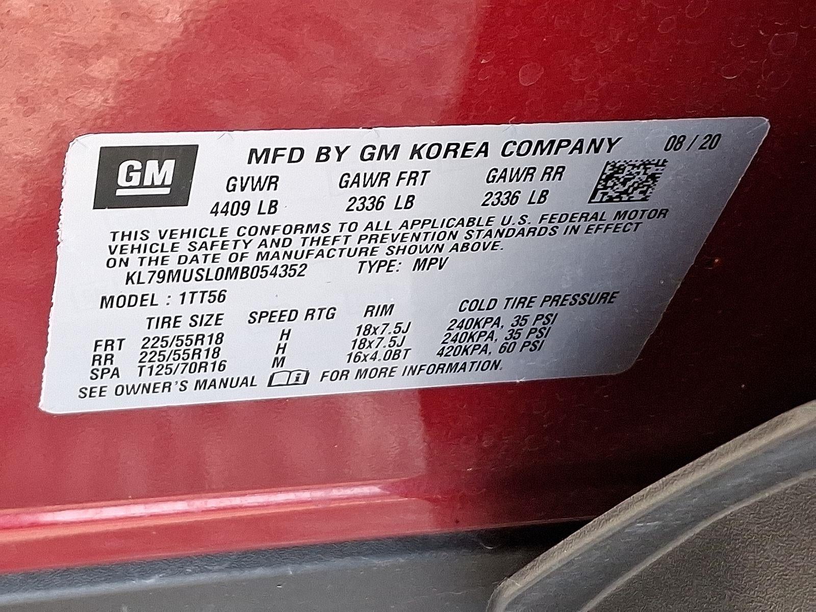 EMISSIONS, CONNECTICUT, DELAWARE, MAINE, MARYLAND, MASSACHUSETTS, NEW JERSEY, NEW YORK, OREGON, PENNSYLVANIA, RHODE ISLAND, VERMONT AND WASHINGTON STATE REQUIREMENTS, ENGINE, ECOTEC 1.3L I3 TURBO DOHC SIDI WITH VARIABLE VALVE TIMING (VVT), TRANSMISSION, 9-SPEED AUTOMATIC, AXLE, 3.17 FINAL DRIVE RATIO, SCARLET RED METALLIC, MOSAIC BLACK METALLIC TWO-TONE ROOF, SEATS, FRONT BUCKET, JET BLACK WITH RED ACCENTS, CLOTH WITH LEATHERETTE SEAT TRIM, AUDIO SYSTEM, CHEVROLET INFOTAINMENT 3 PLUS SYSTEM, TECHNOLOGY PACKAGE, CONVENIENCE PACKAGE, DRIVER CONFIDENCE PACKAGE, HEADLAMPS, LED, LICENSE PLATE BRACKET, FRONT, AUDIO SYSTEM FEATURE, BOSE PREMIUM 7-SPEAKER SYSTEM, HD RADIO, AUDIO SYSTEM FEATURE, MEMORY CARD RECEPTACLE, SIRIUSXM RADIO, POWER OUTLET, 120-VOLT, USB CHARGING-ONLY PORTS, WIRELESS CHARGING, DRIVER INFORMATION CENTER, ENHANCED, 4.2"" DIAGONAL MULTI-COLOR DISPLAY, ADAPTIVE CRUISE CONTROL, AIR CONDITIONING, SINGLE-ZONE AUTOMATIC CLIMATE CONTROL, SENSOR, CABIN HUMIDITY, MIRROR, INSIDE REARVIEW AUTO-DIMMING, VISORS, DRIVER AND FRONT PASSENGER ILLUMINATED VANITY MIRRORS, COVERED, SLIDING, HD REAR VISION CAMERA, REAR PARK ASSIST, REAR CROSS TRAFFIC ALERT, LANE CHANGE ALERT WITH SIDE BLIND ZONE ALERT